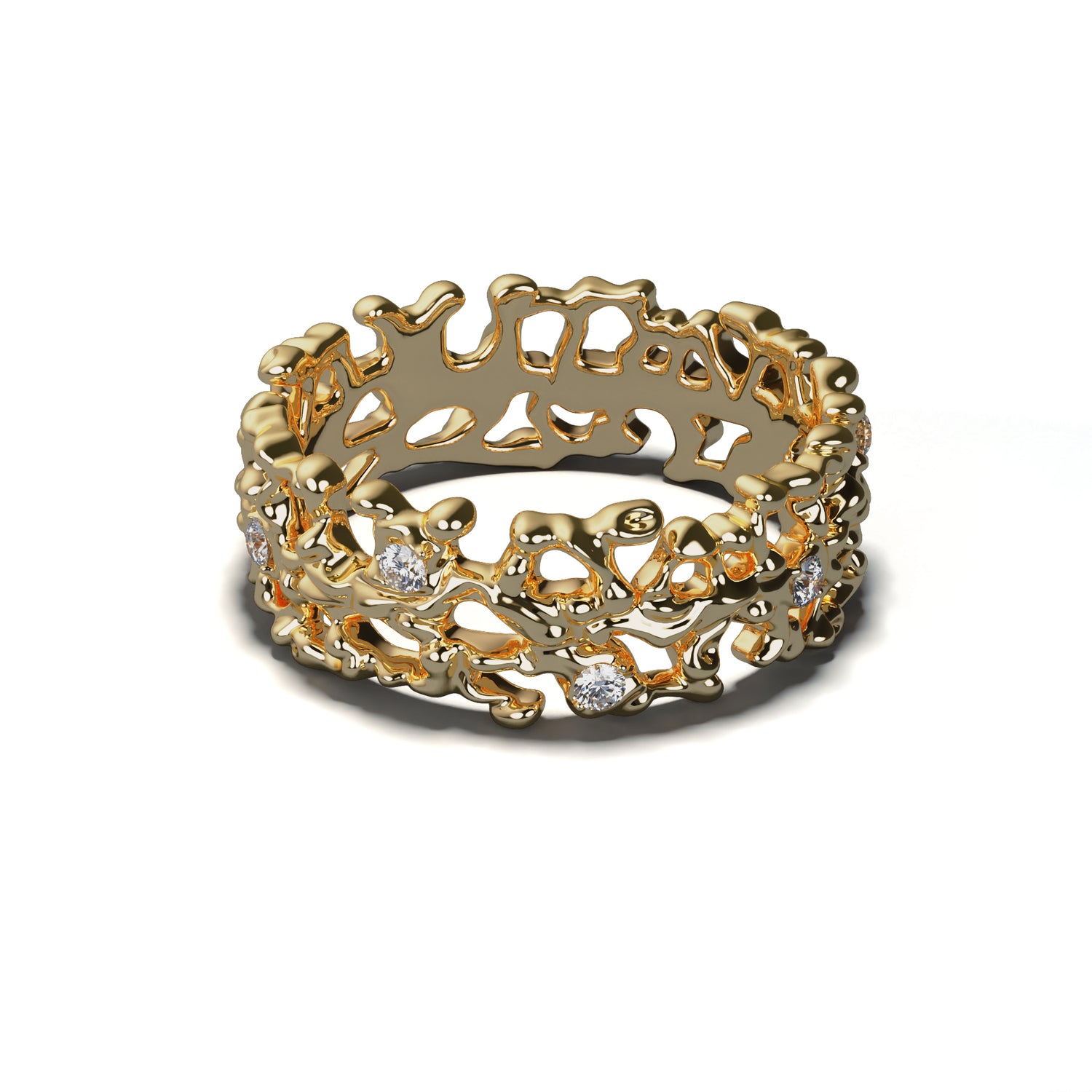 Featuring an organic, shimmering seabed of molten gold, Lava is a reminiscent of a coral reef, scattered with hidden, sparkling diamonds.