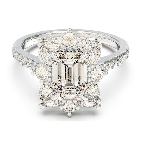 4 CLAW EMERALD MARQUISE HALO PAVÈ BAND
