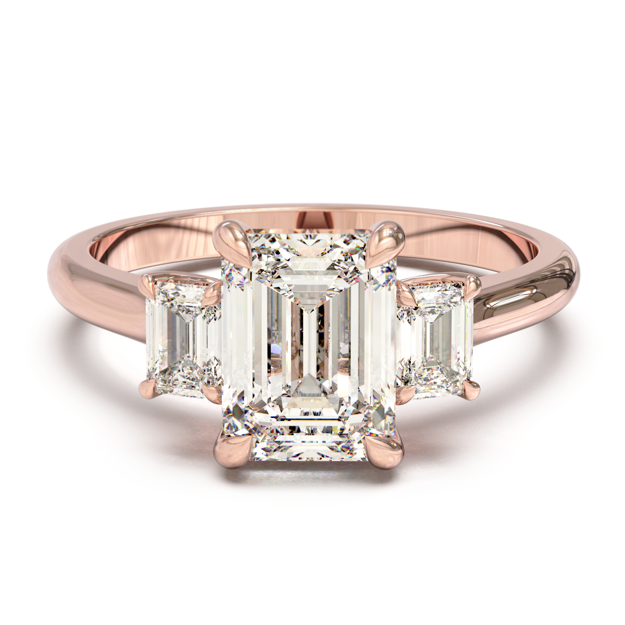 Trilogies are the ultimate, timless classic. Featuring a large emerald-cut diamond and art-deco style, VIENNE contrasts with two flanking baguette diamonds.
