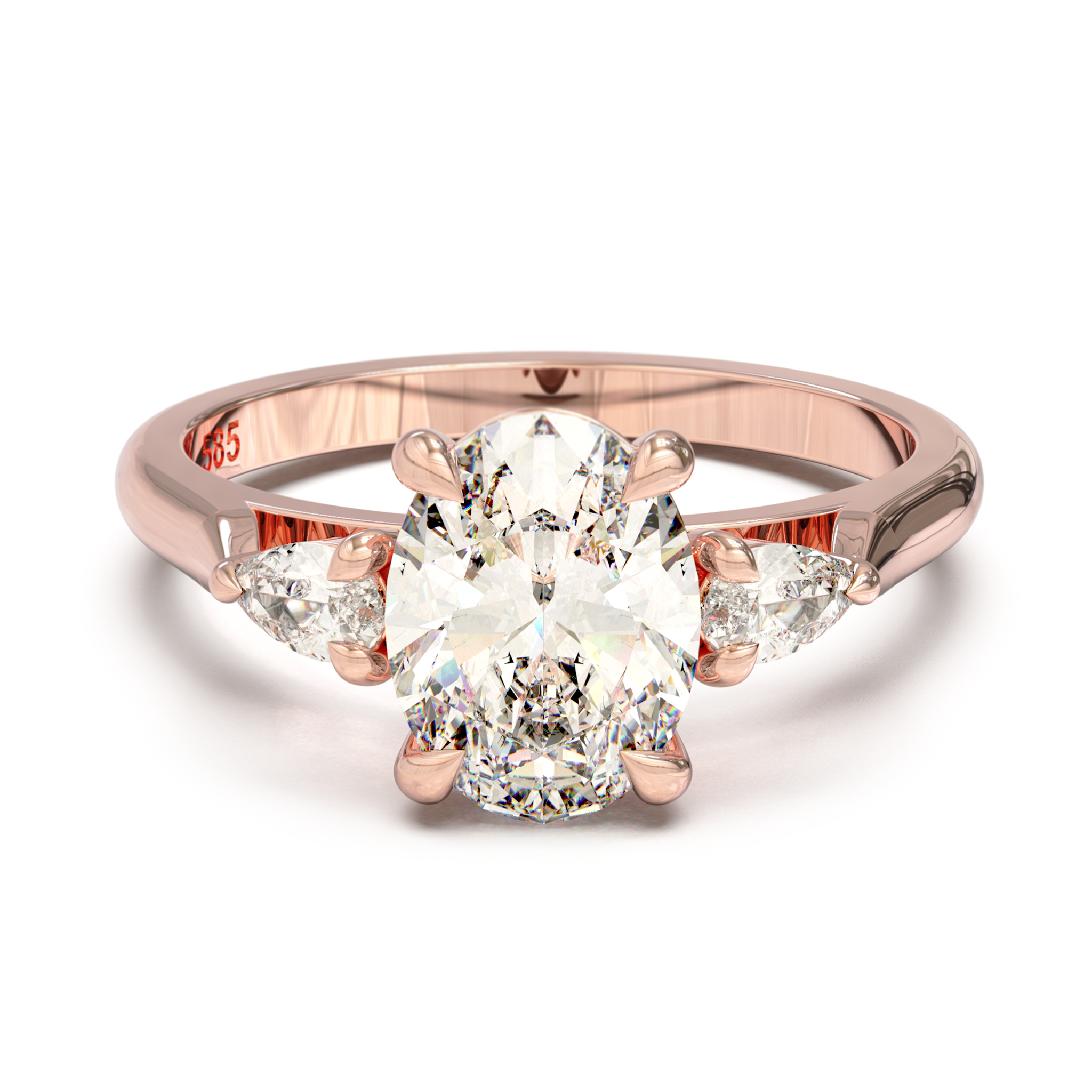 The graceful trilogy ring, LUMINESCE features a trio of beautiful oval and pear diamonds, along with a hidden internal diamond.